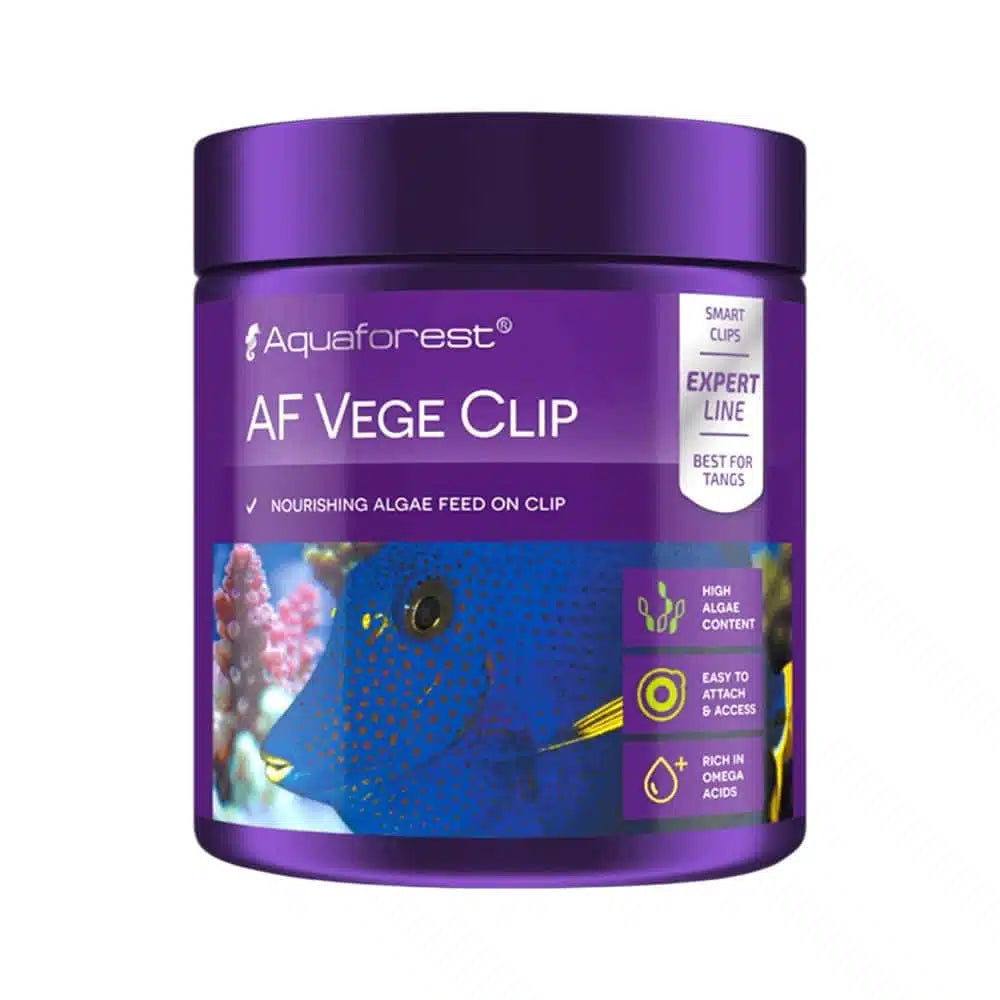 Nutritional feed intended for herbivorous ornamental fish, among others. To ensure proper development, resistance to disease AF Vege Clip is made up of 7 algae varieties and enriched in phytoplankton, minerals and vitamins to form a complete balanced diet for all types of fish. The feed is placed on the clip so that it can be hung in any part of the aquarium giving the fish the freedom to swim and eat freely. Product intended for aquarium use only. Not suitable for human consumption. Keep away from children.