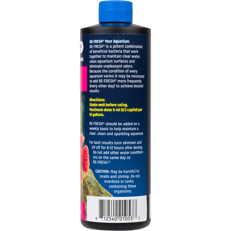 Dr Tim’s Re-Fresh Freshwater is a natural water treatment designed to rejuvenate and maintain clear, healthy water in freshwater aquariums. It uses beneficial bacteria and enzymes to break down organic waste, eliminate odors, and outcompete unwanted algae. Safe for all fish and plants, it helps maintain biological balance and improves overall water quality, making it ideal for regular maintenance or after water changes.